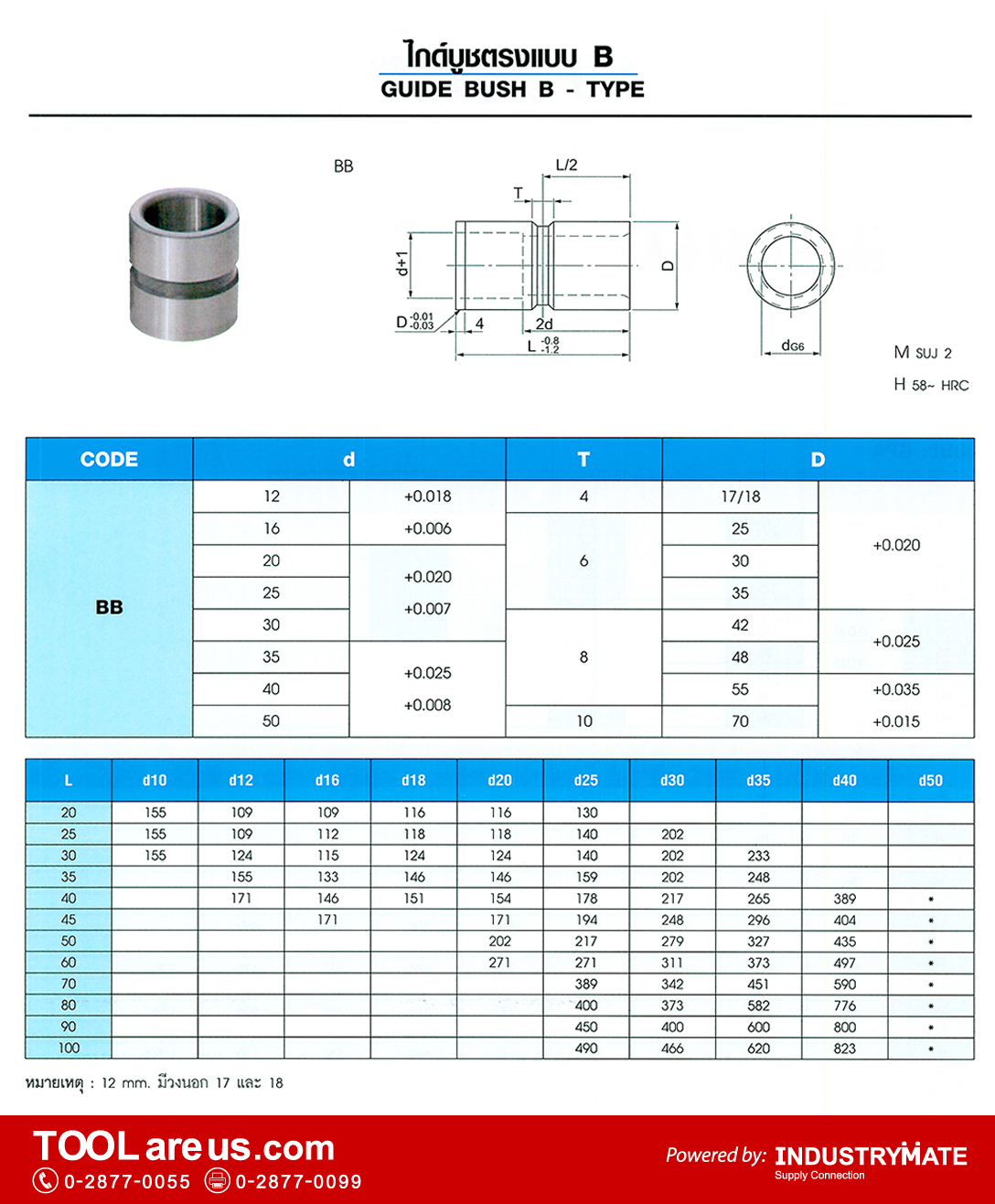ไกด์บูช แบบตรง BB และ ไกด์บูช มีบ่า BA