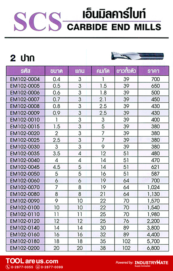 ดอกเอ็นมิลคาร์ไบด์ ยี่ห้อ SCS รุ่น 2 ปาก และ 4 ปาก