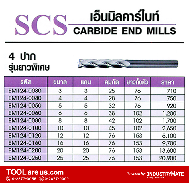 ดอกเอ็นมิลคาร์ไบด์ ยี่ห้อ SCS รุ่นยาว (Extra Long) 2 ปาก และ 4 ปาก