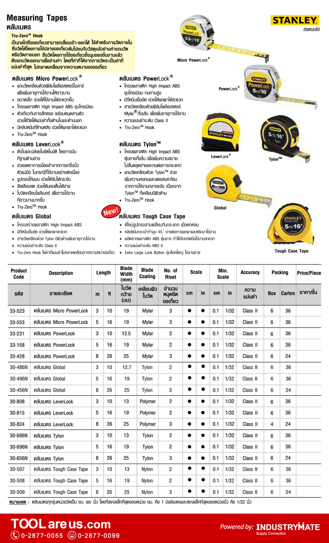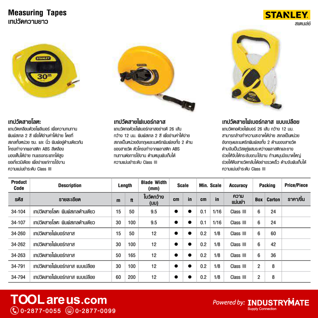 สเปค และรายละเอียด เทปวัดความยาว ยี่ห้อ STANLEY แต่ละรุ่น