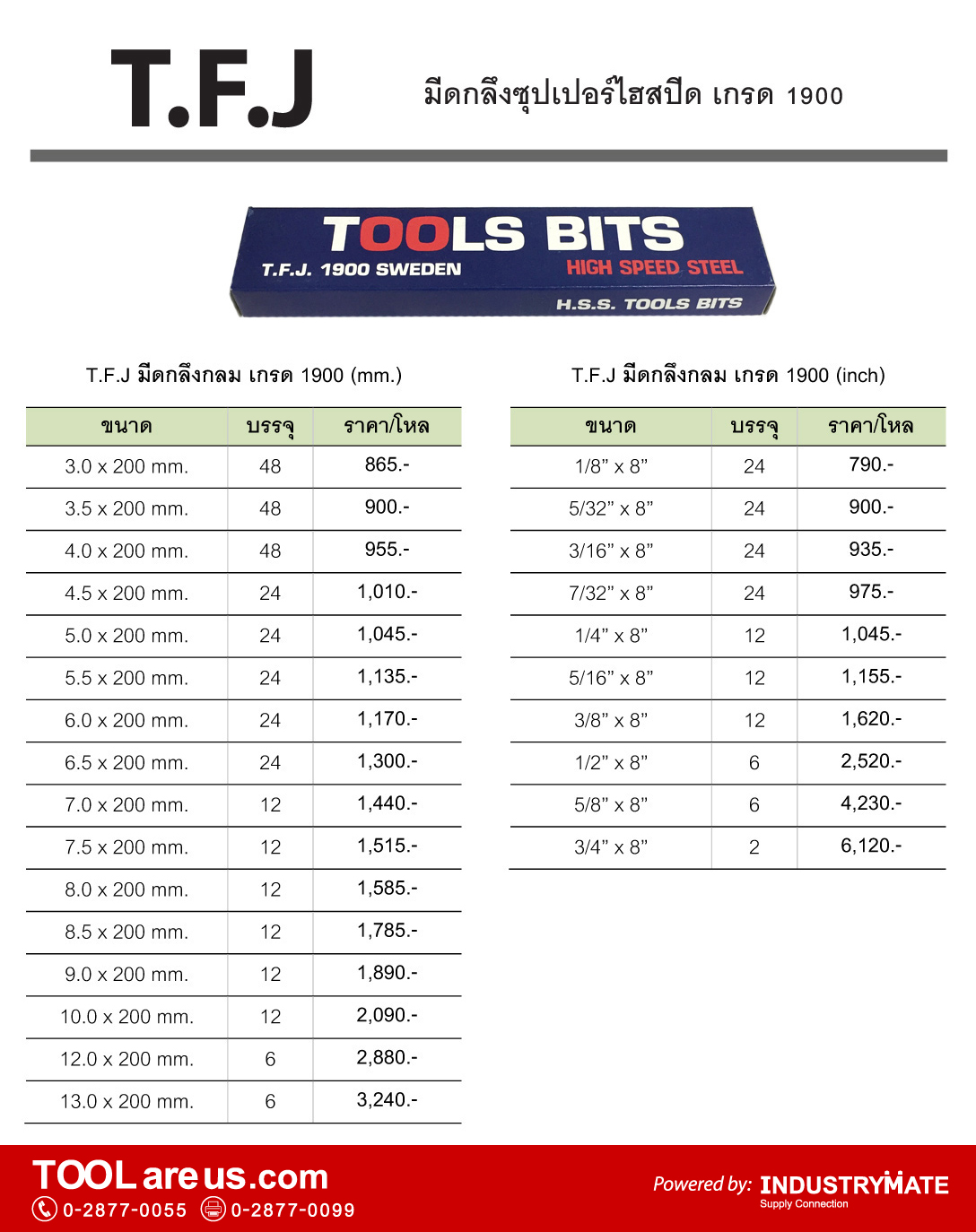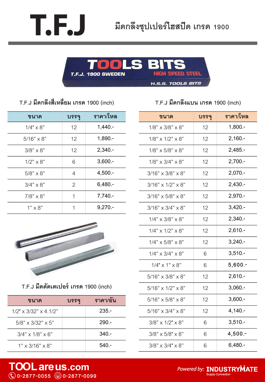 มีดกลึงเหลี่ยม มีดกลึงแบน มีดตัดเตเปอร์ มีดกลึงกลม ยี่ห้อ T.F.J. (สวีเดน)