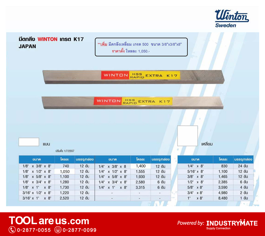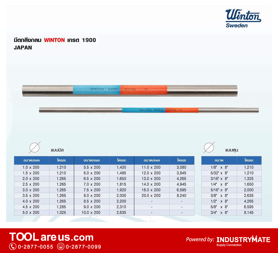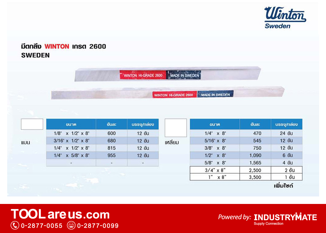 มีดกลึง หรือ มีดขาว ยี่ห้อวินตัน (WINTON) ผลิตจากเหล็กกล้ารอบสูง หรือเหล็กไฮสปีด (High Speed Steel HSS) ที่มีคุณภาพดีส่งตรงจากประเทศสวีเดน
