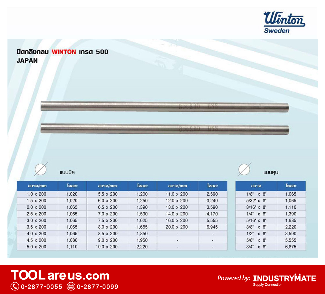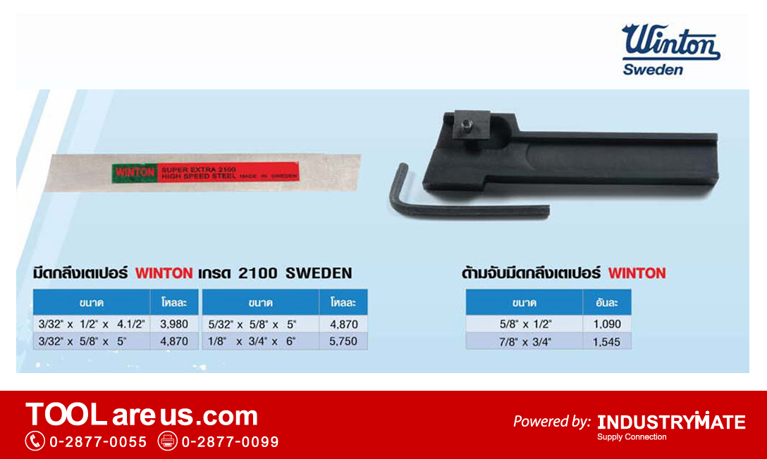 มีดกลึงไฮสปีด มีดกลึงเหลี่ยม มีดกลึงแบน และมีดตัดเตเปอร์ ยี่ห้อ WINTON